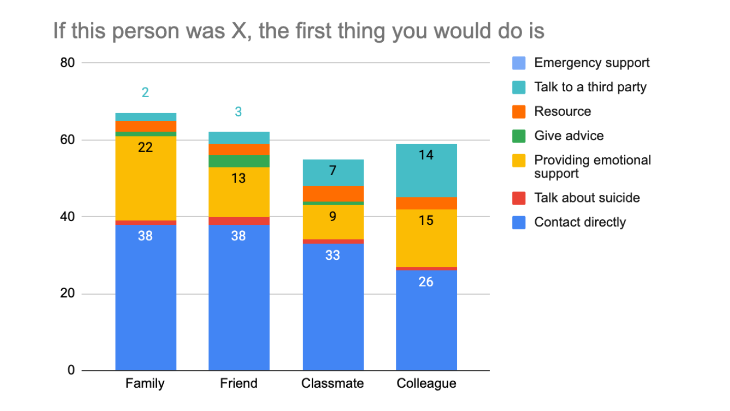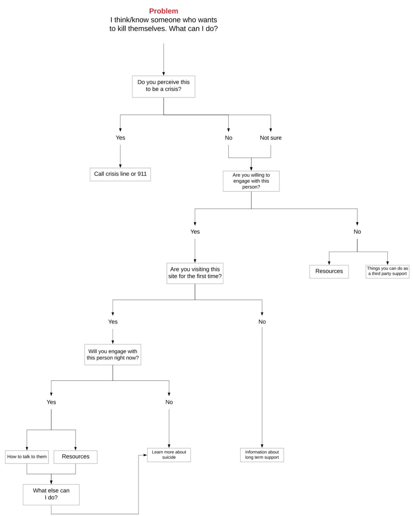 The original intent was to display suicide information in a 5 module sequence. Users would learn how to provide long-term support to people considering suicide.