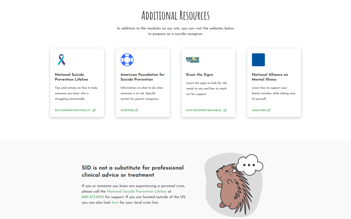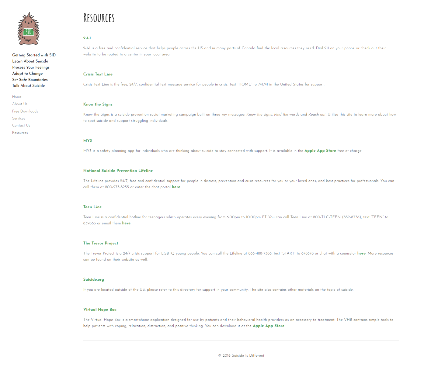Suicide is Different (SID) offers crisis intervention education for people who want to help.